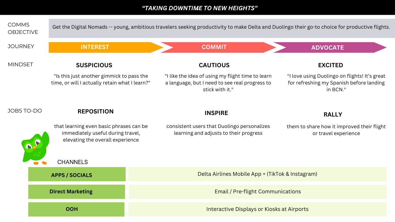 Offer engaging Duolingo content on Delta flights, allowing Gen Z and Millennial passengers to learn or improve language skills during travel time.