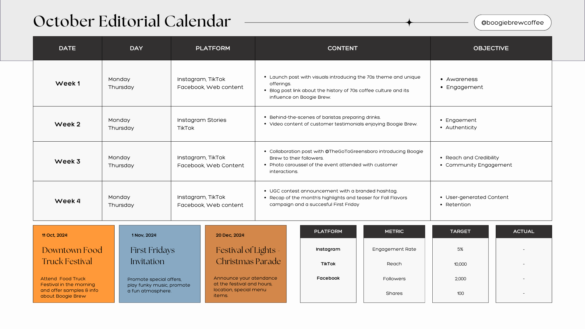 Grow Boogie Brew's social media following + get involved locally + drive sales